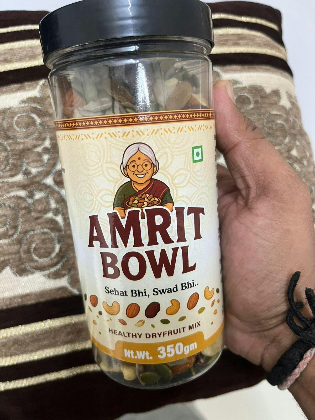 Amrit Bowl's Dry Fruit Mix a wholesome blend of premium almonds, cashews, dried dates, raisins, cranberries, and nutrient-rich seeds roasted in a touch of desi ghee for an irresistible taste. Packed with protein, fibre, vitamins, and minerals, Amrit Bowl is your perfect anytime energy booster – ideal as a healthy snack, topping, or festive gift. With no added preservatives or refined sugar, it’s the delicious way to care for your health every day.